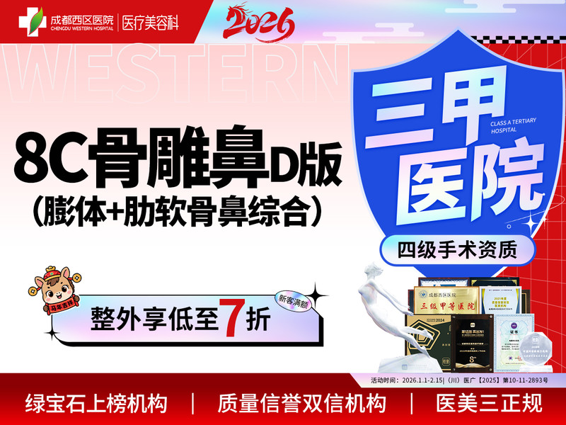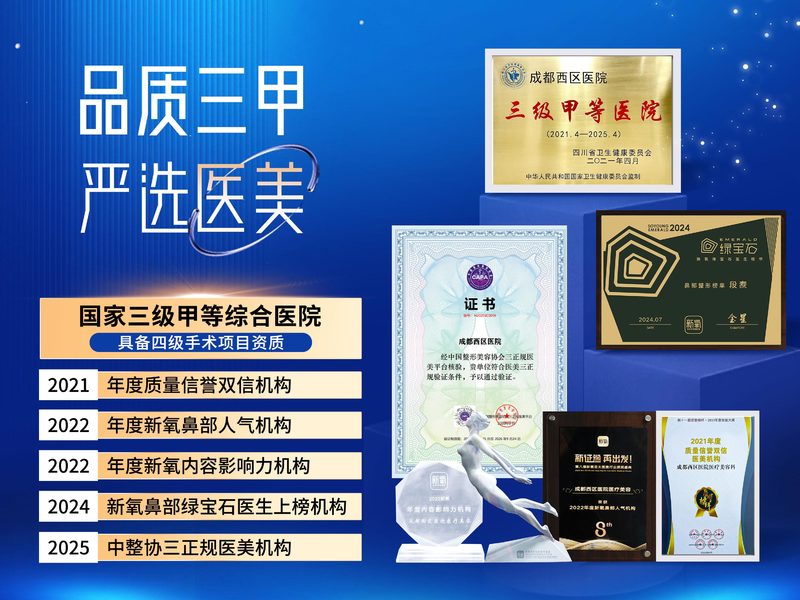 外地顾客按比例报销车旅费成都西区医院医疗美容荣获新氧年度鼻部人气机构,绿宝石医生机构;专注鼻部整形@段焘@邓东伟,三甲医院,四级手术资质,副高医师团队,安心塑美,消费透明。